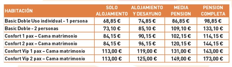 Precios válidos hasta el día 30 de abril 2024. Reserva no cancelable. Al realizar la reserva se debe de dar un número de tarjeta para poder hacer el cargo de la habitación.